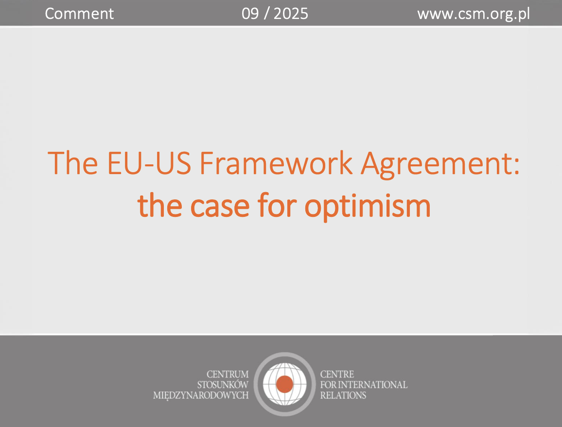 “The EU-US Framework Agreement on Reciprocal, Fair and Balanced Trade, announced on 21 August 2025, establishes new parameters for transatlantic economic relations. It addresses tariffs, energy and technology, investment initiatives, defense procurement and regulatory cooperation. While concerns have been raised about possible asymmetries, the agreement provides tangible commitments that justify a cautiously optimistic assessment.”- writes Prof. dr Danuta Hübner in CIR’s comment, Senior Fellow at CIR, Minister for European Affairs (2003-2004)and Member of the European Parliament (2009-2024)